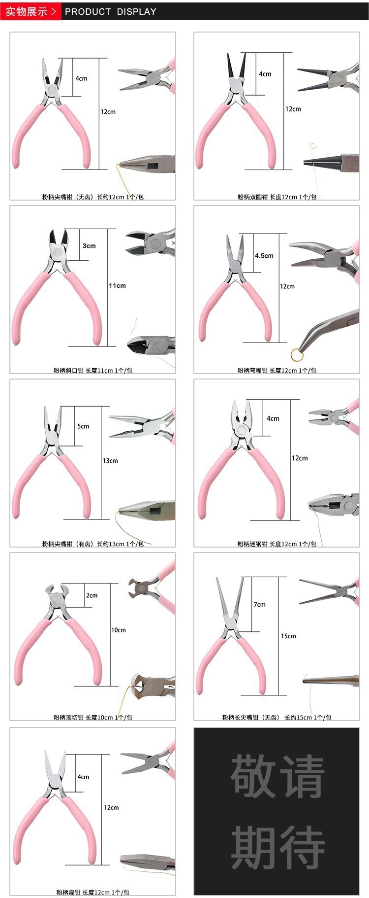 The pink-handled pointed-nose pliers (toothless) are approximately 12cm long | The powder-handled double round pliers are 12cm in length | The length of the pink-handled diagonal pliers is 11cm | The length of the pink-handled curved mouth pliers (toothless) is 12cm | The pink-handled pointed-nose pliers (with teeth) are approximately 13cm long | The length of the pink-handled steel pliers is 12cm | The length of the powder-handled top cutting pliers is 10cm | The pink-handled long pointed nose pliers (toothless) are approximately 15 ° in length | The pink-handled flat pliers (toothless) are 12cm in length | The powder-handled 3-hole steel pliers (with teeth) are approximately 12cm in length | The yellow-handled pointed-nose pliers (toothless) are approximately 13c in length | The yellow-handled double round pliers are approximately 12cm in length | The yellow-handled long double round pliers are approximately 13.5cm in length | The length of the yellow-handled diagonal pliers is approximately 11.5cm | The yellow-handled curved mouth pliers (toothless) are approximately 13cm in length | The yellow-handled pointed-nose pliers (with teeth) are approximately 13cm in length | The yellow-handled steel pliers are approximately 12cm in length | The length of the yellow-handled top-cutting pliers is approximately 10cm | The yellow-handled flat-mouthed pliers (toothless) are approximately 12cm in length | The yellow-handled flat-mouthed pliers (with teeth) are approximately 13cm in length | The yellow-handled 3-hole flat-mouthed pliers (with teeth) are approximately 12cm in length | Upgraded version - Bright pink handle 3-hole steel pliers (with teeth) approximately 12c in length | Upgraded version - Bright pink handle flat pliers (toothless), length: 12cm | Upgraded version - Bright pink handle long pointed nose pliers (toothless) approximately 15cm in length | Upgraded model - Bright pink handle top cutting pliers with a length of 10cm | Upgraded version - Bright pink handle steel pliers with a length of 12cm | Upgraded version - The bright pink handle pointed-nose pliers are approximately 13cm long | Upgraded version - Bright pink handle curved mouth pliers (toothless) 12cm in length | Upgraded model - Bright pink handle diagonal pliers, 11cm in length | Upgraded model - Double round pliers with bright pink handles, 12cm in length | Upgraded version - Bright pink handle pointed-nose pliers (toothless) approximately 12cm in length